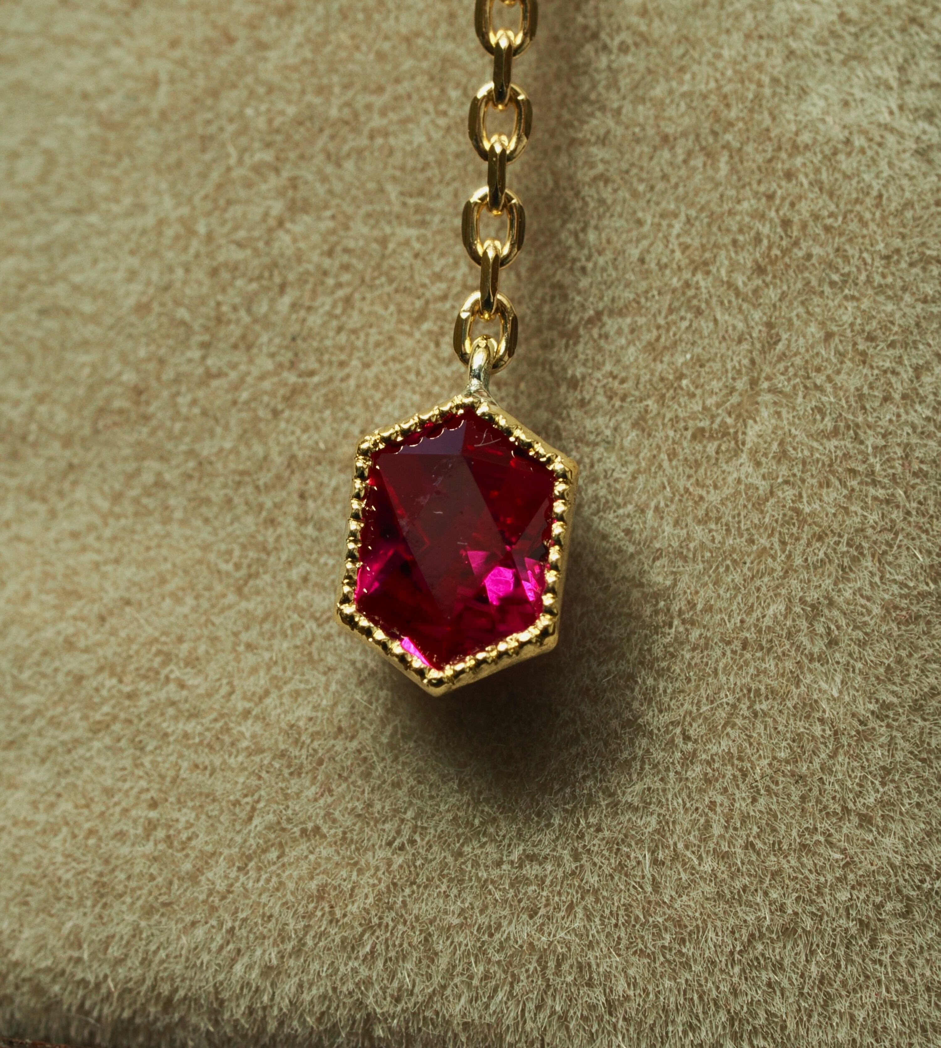 ムーンストーンさん・サファイアさん・ルビーさんを配置した、揺れるシンプルネックレスです。