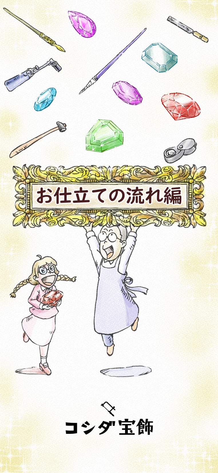 マンガ仕立てで、ジュエリーの見方を解説しております。